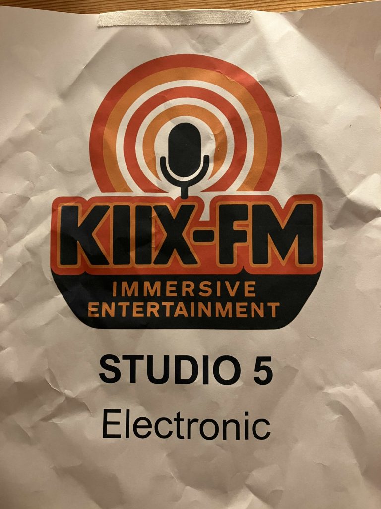 With these elements, each team had about 40 hours to create their own 10-minute immersive experience. There would be three shows—each “show” comprises all eight teams’ vignettes—on Sunday, May 4: noon (the previews), 4pm, and 7pm. Each show ran for two hours, with an intermission. During those two hours, audience groups were led by a guide, portraying a DJ from KIIX Immersive Radio, to the eight teams’ musical genre-inspired creations.