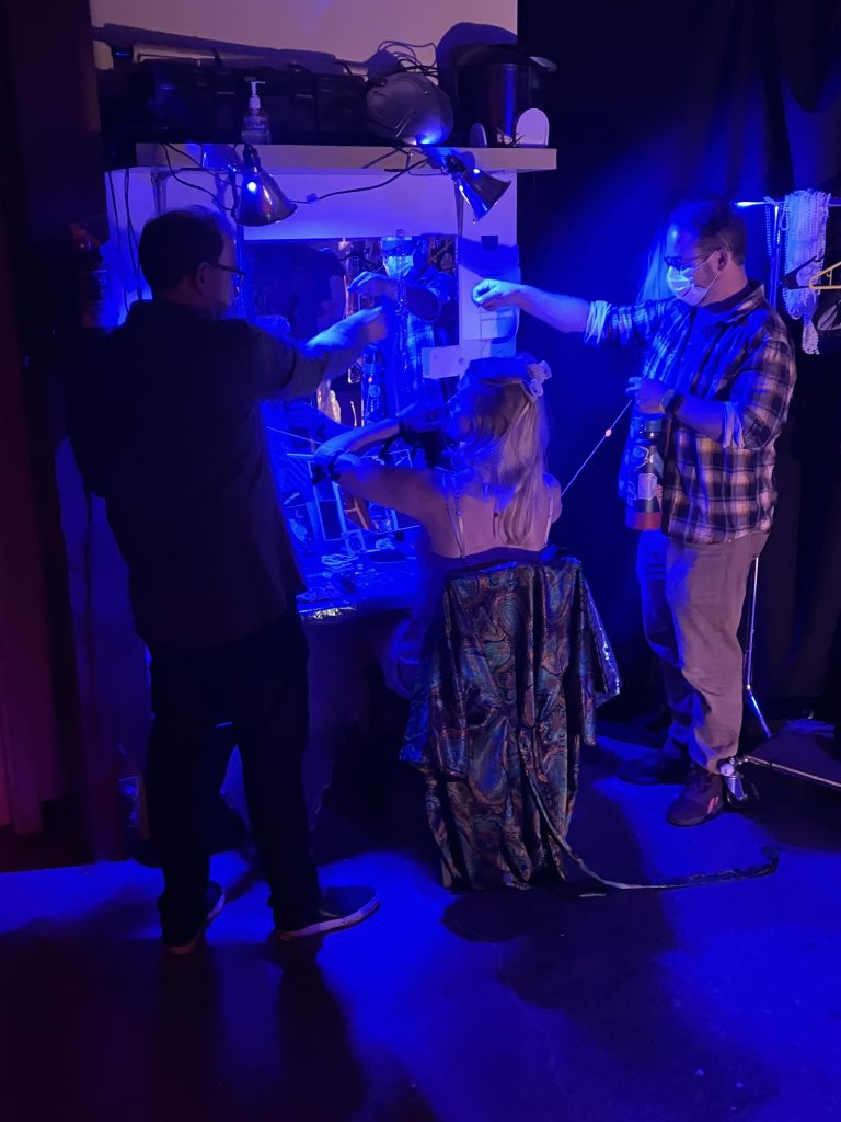 I almost cast Abigail (Abby) in Temp Cupid (2024), but we didn’t have the budget for another actor. Yet we stayed in touch. Both Abby and her friend, Tiffany (Tiff), had done immersive shows in Colorado, where they relocated from, plus seen some and been in some in LA (e.g., The Narrative Treatment Plant by Mister & Mischief). We met, but hadn’t yet worked together. We were also fortunate to have Rachel Adams, head of the Immersive Art Collective (and The Count’s Den) join us as a production designer and, later, took on the task of DJ/sound designer. We knew we needed a builder on the team, and she’s one of the best. The team was set about a month prior to the Invitational.